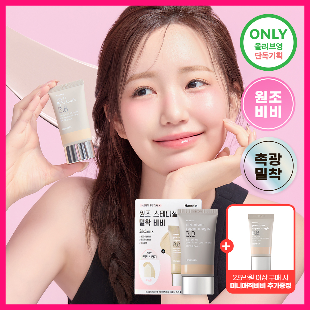 [촉촉피팅/밀착] 한스킨 프리미엄 수퍼 매직 비비 크림 45g 기획 (+쫀쫀스펀지 6P)
