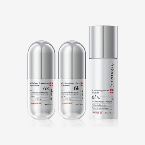 스킨케어4:44아드망 항당화 에이지이에스 2종 세트 (앰플 45ml 2개 + 로션 120ml 1개)“이 제품은 항당화 관리에 초점을 맞춘 제품이에요. 항당화 테스트를 완료한 효과적인 성분들이 들어있어요.”