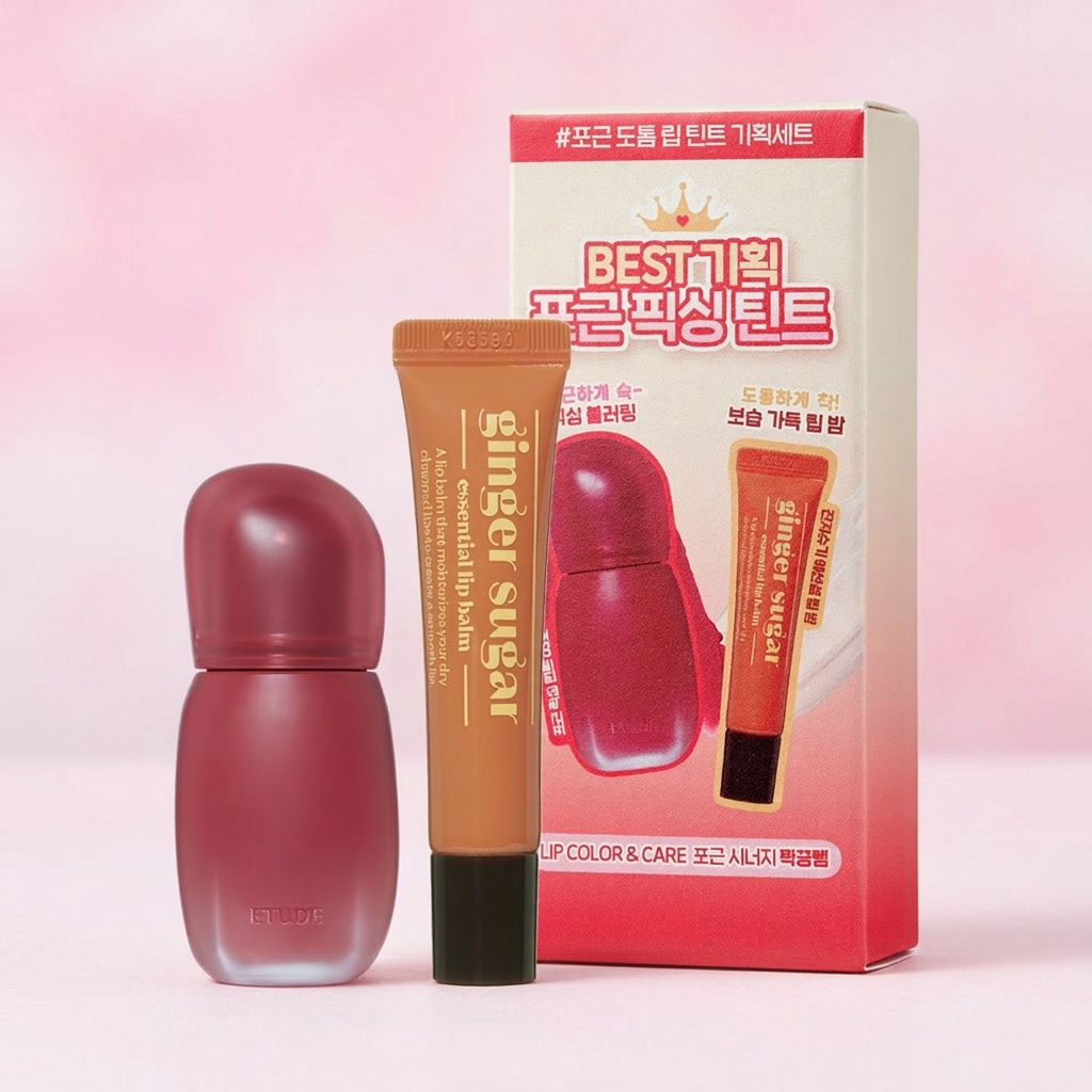 에뛰드 포근 픽싱 틴트 & 진저슈가 에센셜 립 밤 Best 기획 2 Colors“이 틴트는 정말 유명하죠. 우리 쿵미들 다 알고 있을 거예요.”