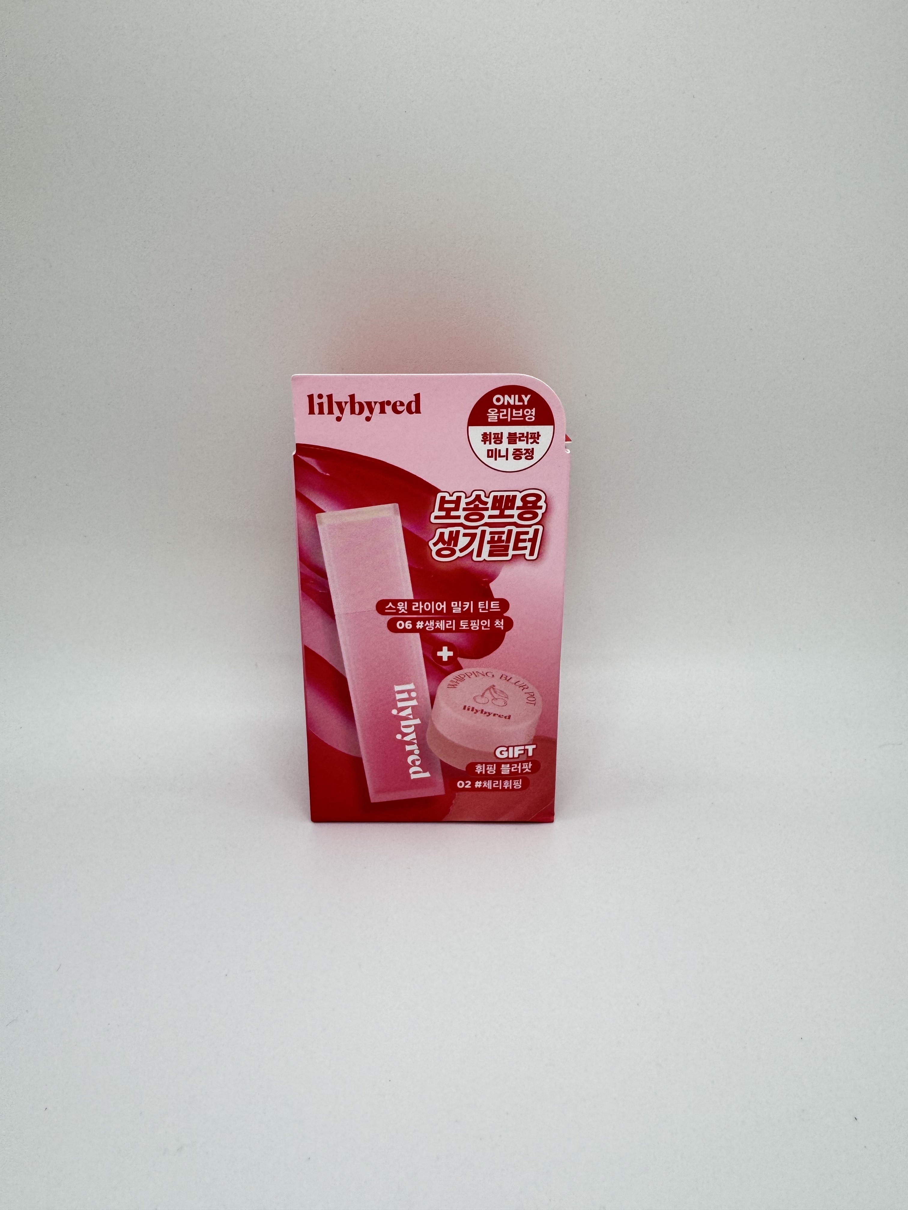 립8:09릴리바이레드 스윗 라이어 밀키 틴트 4g 올리브영기획(휘핑블러팟) 06 생체리 토핑“릴리바이레드 휘핑 블러팟 01 자몽휘핑. 손으로 두드려서 바르면 베이스가 뜯기지 않아요.”